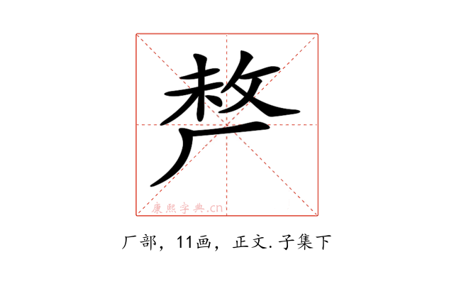 〔𠩺〕字收录于《康熙字典》正文・子集下,康熙部首是厂部。