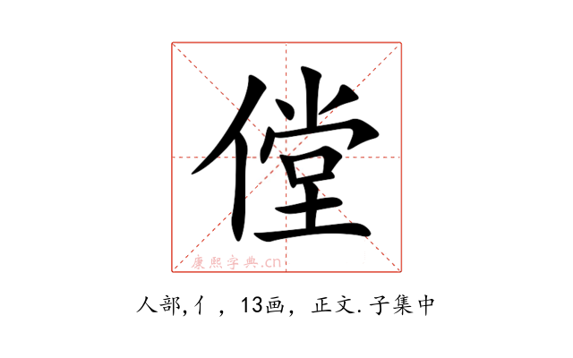 〔㑽〕字拼音是táng,左右结构,可拆字为亻、堂。