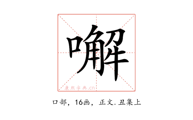 〔𠿇〕字拼音是xiè,左右结构,可拆字为口、解。