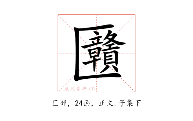 〔㔶〕字拼音是gòng,半包围结构,可拆字为匚、贛。