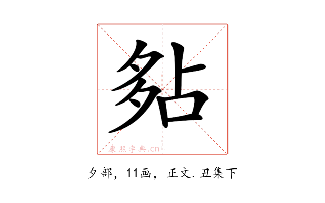 〔𡖞〕字收录于《康熙字典》正文・丑集下,康熙部首是夕部。