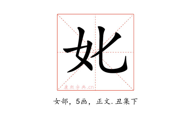 〔𡚨〕字收录于《康熙字典》正文・丑集下,康熙部首是女部。