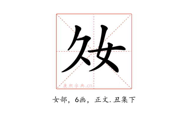 〔𡚮〕字收录于《康熙字典》正文・丑集下,康熙部首是女部。