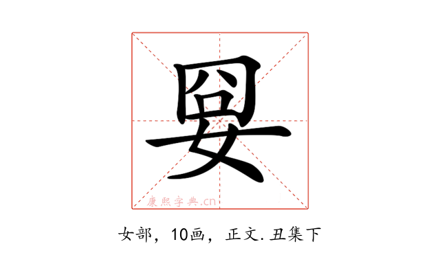 〔𡜸〕字收录于《康熙字典》正文・丑集下,康熙部首是女部。