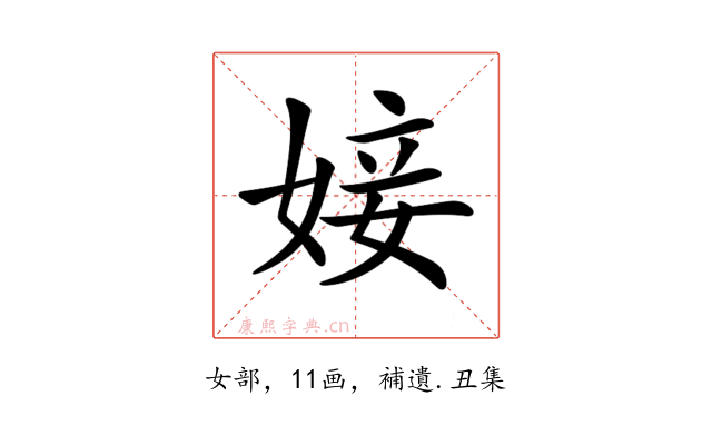 〔𡞘〕字收录于《康熙字典》補遺・丑集,康熙部首是女部。