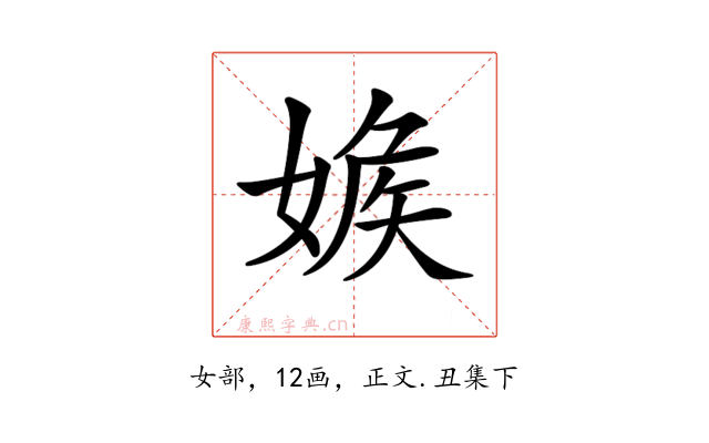 〔𡞥〕字收录于《康熙字典》正文・丑集下,康熙部首是女部。