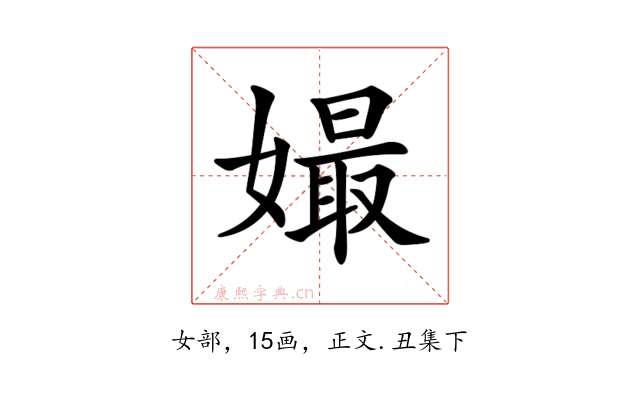 〔𡡔〕字收录于《康熙字典》正文・丑集下,康熙部首是女部。
