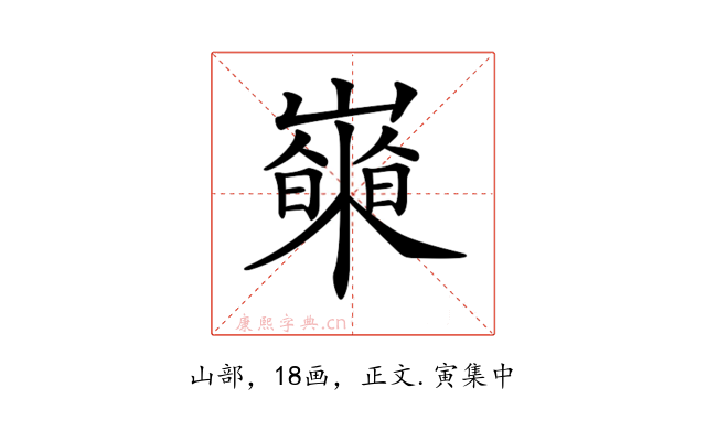 〔𡾍〕字收录于《康熙字典》正文・寅集中,康熙部首是山部。