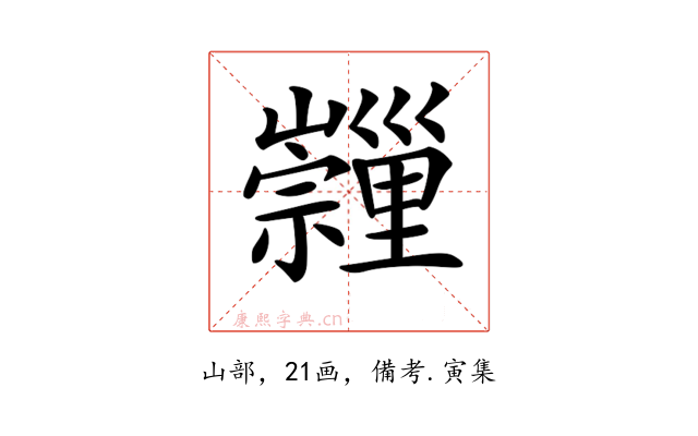 〔𡿂〕字收录于《康熙字典》備考・寅集,康熙部首是山部。