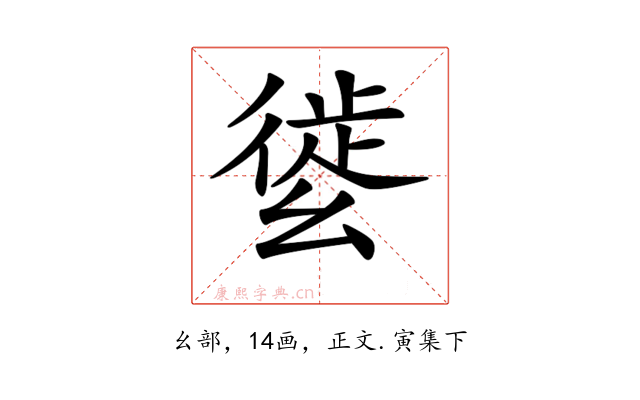 〔𢇌〕字收录于《康熙字典》正文・寅集下,康熙部首是幺部。
