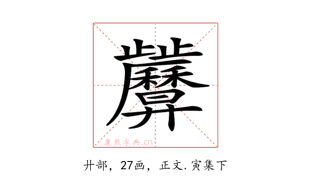 〔𢍷〕字收录于《康熙字典》正文・寅集下,康熙部首是廾部。