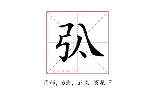 〔𢎬〕字收录于《康熙字典》正文・寅集下,康熙部首是弓部。