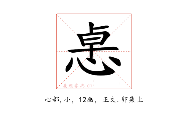 〔𢛂〕字收录于《康熙字典》正文・卯集上,康熙部首是心部。