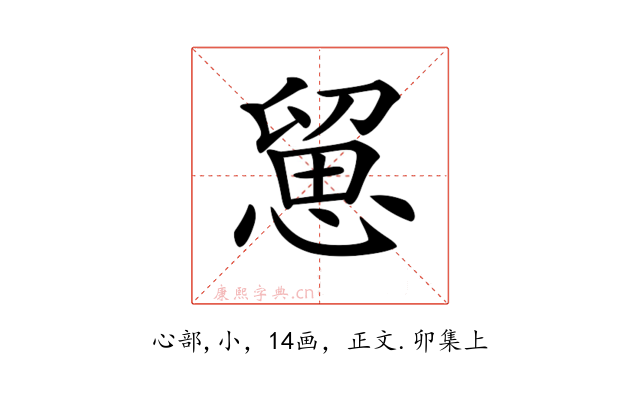 〔𢞭〕字收录于《康熙字典》正文・卯集上,康熙部首是心部。