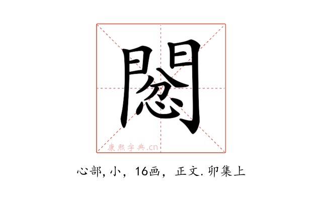 〔𢡙〕字收录于《康熙字典》正文・卯集上,康熙部首是心部。