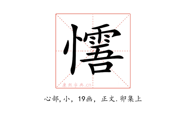 〔𢤓〕字左右结构,可拆字为忄、⻗、吾。