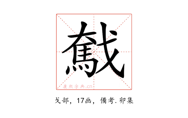 〔𢨗〕字收录于《康熙字典》備考・卯集,康熙部首是戈部。