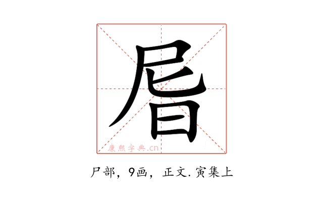 〔㞓〕字收录于《康熙字典》正文・寅集上,康熙部首是尸部。