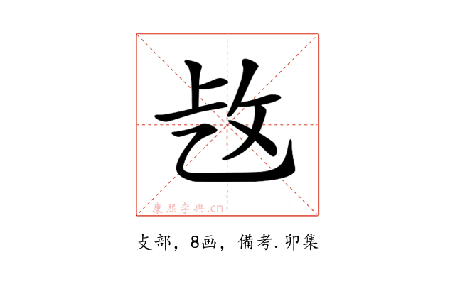 〔𢼁〕字收录于《康熙字典》備考・卯集,康熙部首是攴部。
