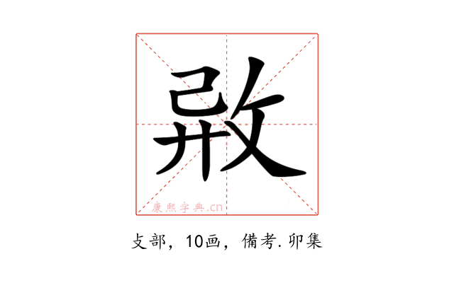 〔𢼷〕字收录于《康熙字典》備考・卯集,康熙部首是攴部。