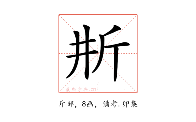 〔𣂗〕字收录于《康熙字典》備考・卯集,康熙部首是斤部。