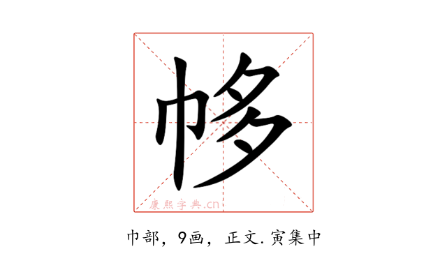 〔㡅〕字收录于《康熙字典》正文・寅集中,康熙部首是巾部。