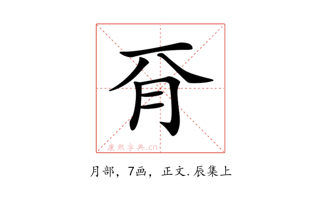 〔𣍡〕字收录于《康熙字典》正文・辰集上,康熙部首是月部。