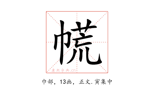 〔㡛〕字拼音是máng,左右结构,可拆字为巾、荒。