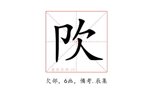 〔𣢀〕字收录于《康熙字典》備考・辰集,康熙部首是欠部。