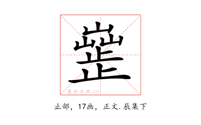〔𣦣〕字收录于《康熙字典》正文・辰集下,康熙部首是止部。