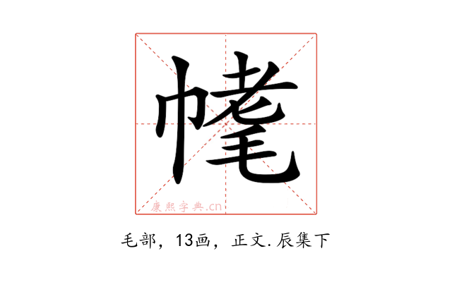 〔𣮳〕字收录于《康熙字典》正文・辰集下,康熙部首是毛部。