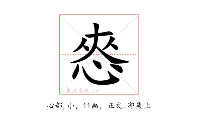 〔㤲〕字收录于《康熙字典》正文・卯集上,康熙部首是心部。