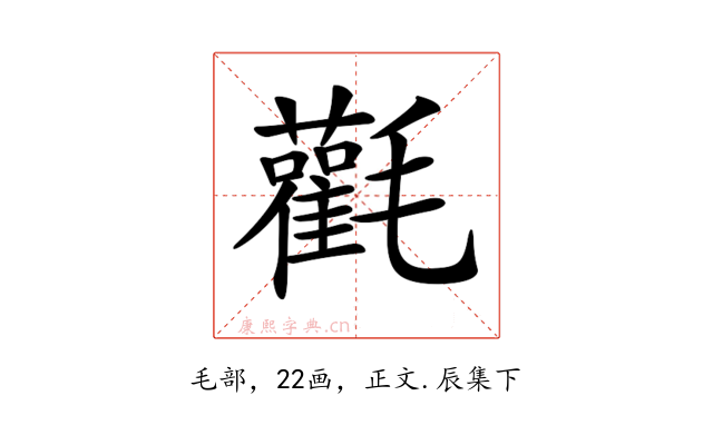 〔𣰻〕字收录于《康熙字典》正文・辰集下,康熙部首是毛部。