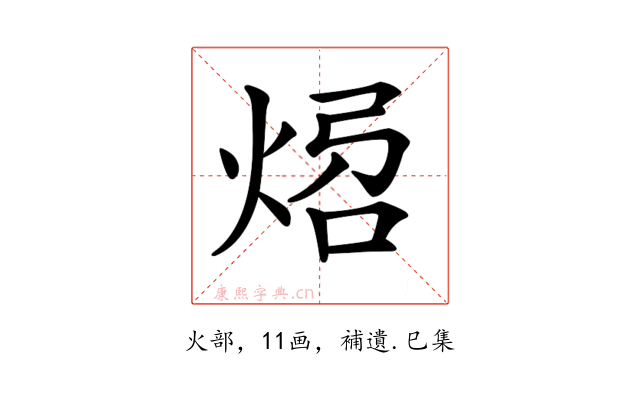 〔𤉝〕字收录于《康熙字典》補遺・巳集,康熙部首是火部。