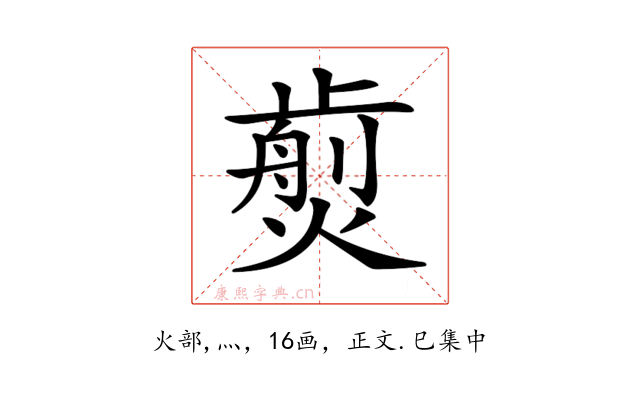 〔𤎵〕字收录于《康熙字典》正文・巳集中,康熙部首是火部。