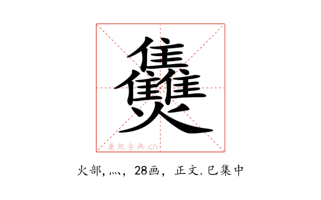 〔𤓪〕字收录于《康熙字典》正文・巳集中,康熙部首是火部。