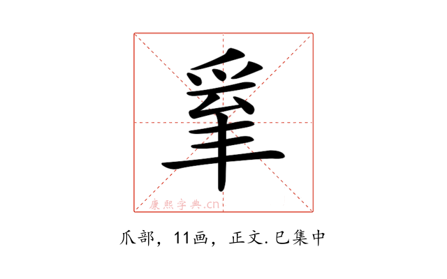 〔𤔒〕字收录于《康熙字典》正文・巳集中,康熙部首是爪部。