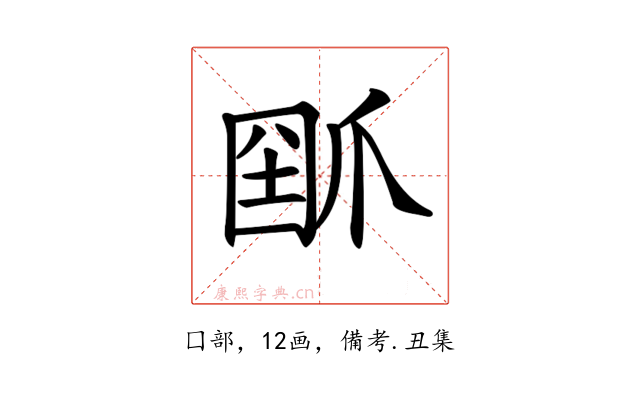 〔𤔗〕字收录于《康熙字典》備考・丑集,康熙部首是囗部。