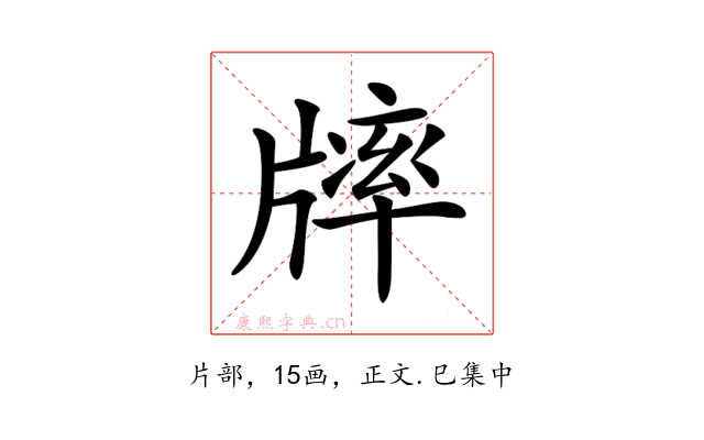 〔𤗪〕字收录于《康熙字典》正文・巳集中,康熙部首是片部。
