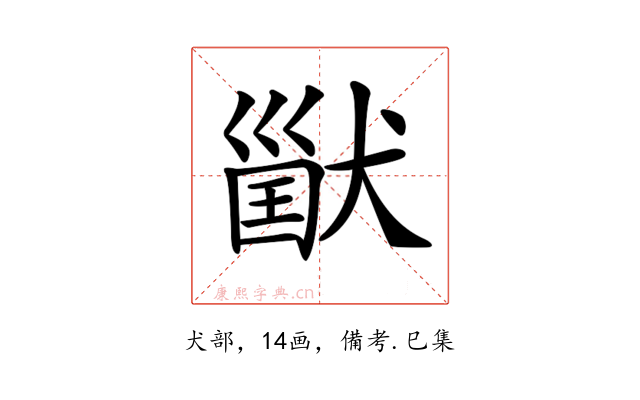 〔𤠪〕字收录于《康熙字典》備考・巳集,康熙部首是犬部。
