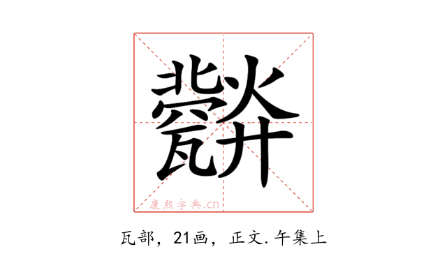 〔𤮪〕字收录于《康熙字典》正文・午集上,康熙部首是瓦部。