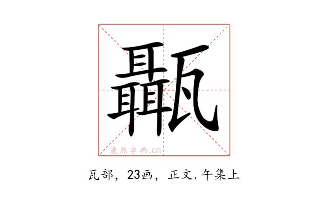 〔𤮱〕字收录于《康熙字典》正文・午集上,康熙部首是瓦部。