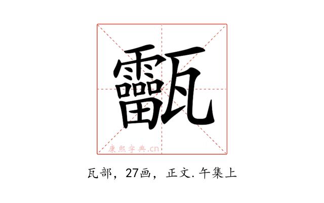 〔𤮸〕字收录于《康熙字典》正文・午集上,康熙部首是瓦部。