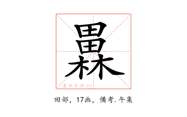 〔𤳥〕字收录于《康熙字典》備考・午集,康熙部首是田部。