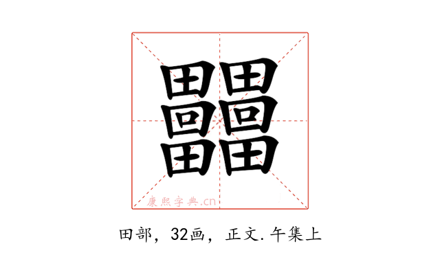 〔𤴐〕字收录于《康熙字典》正文・午集上,康熙部首是田部。