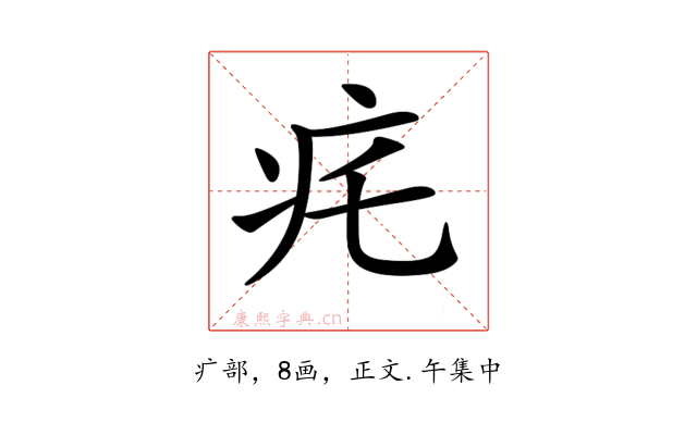 〔𤴱〕字收录于《康熙字典》正文・午集中,康熙部首是疒部。