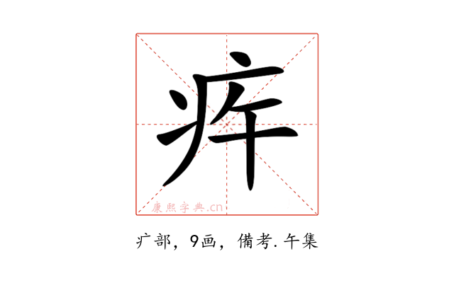 〔𤵍〕字收录于《康熙字典》備考・午集,康熙部首是疒部。