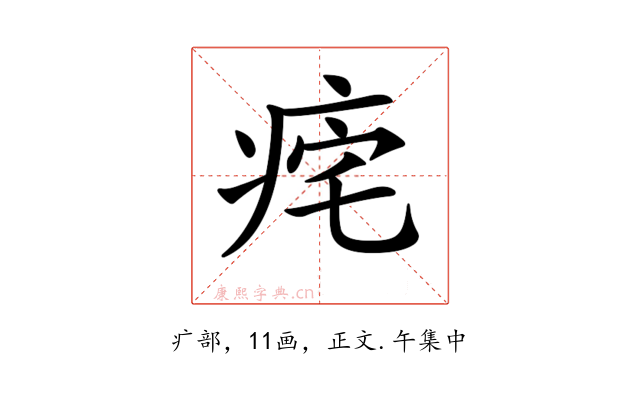 〔𤵾〕字收录于《康熙字典》正文・午集中,康熙部首是疒部。
