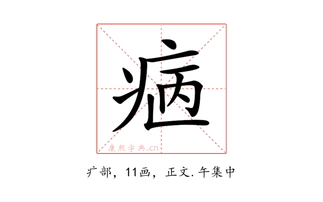 〔𤵿〕字收录于《康熙字典》正文・午集中,康熙部首是疒部。