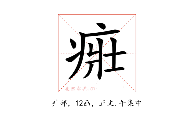 〔𤶜〕字拼音是zhuàng,半包围结构,可拆字为疒、壯。